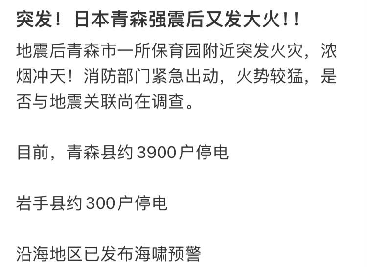 日本青森縣外海7.6強震!