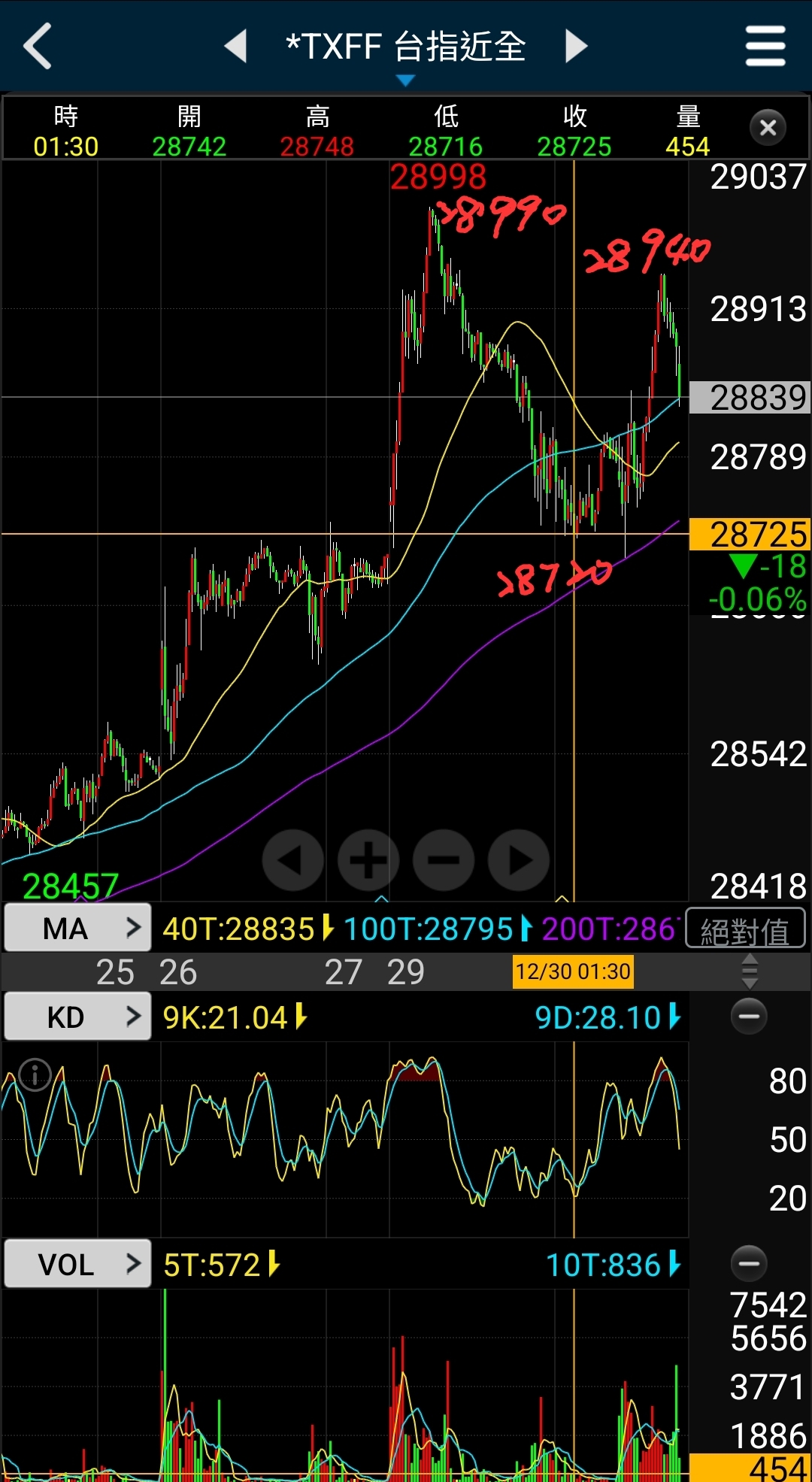 台指28990/28720/28940來回收割超過500點價差,