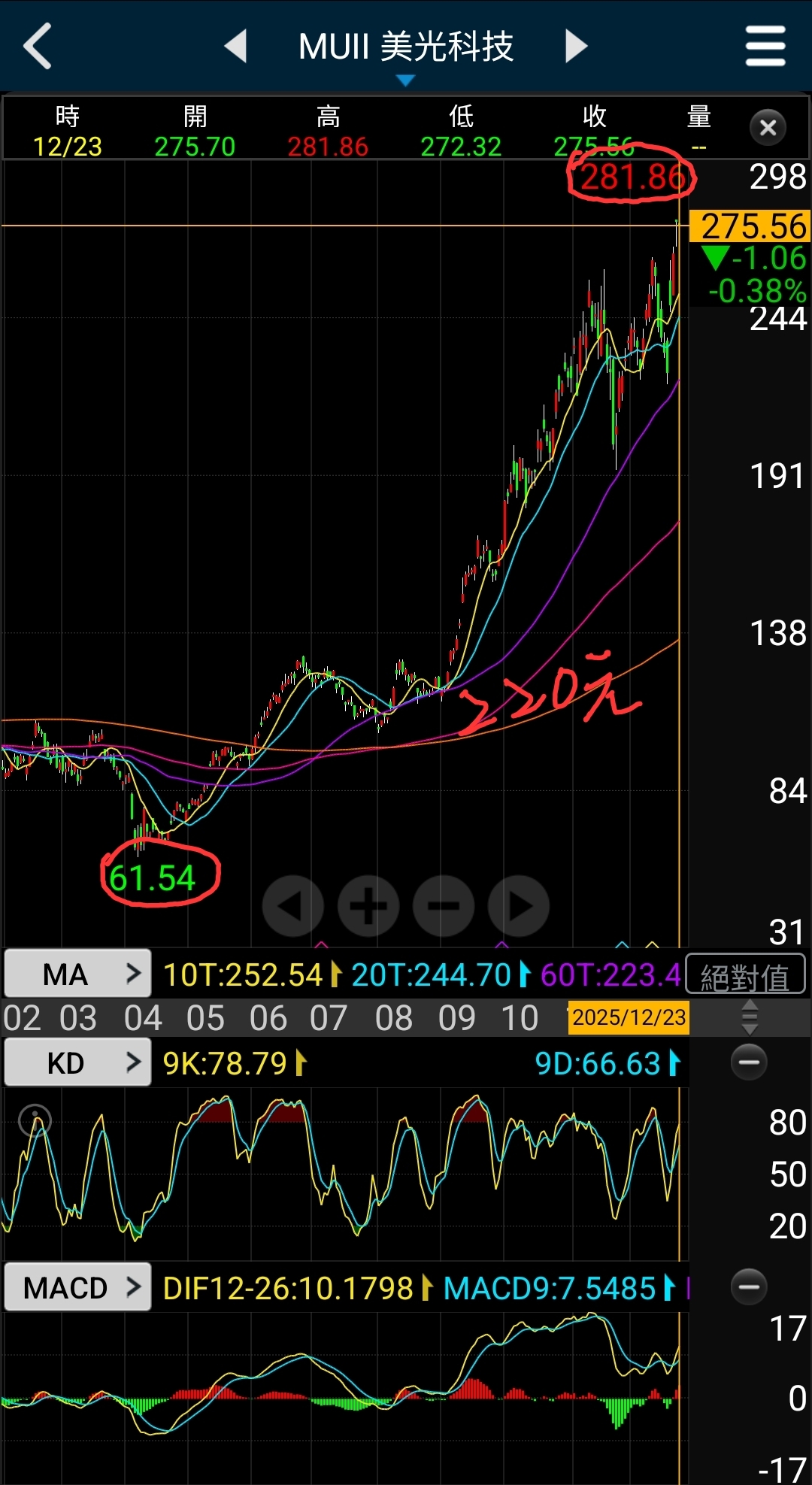 記憶體龍頭美光281已漲不動,如早上提示:不適合追高!😎