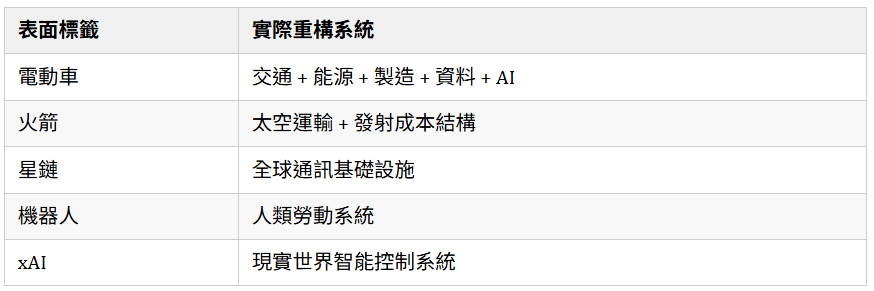 馬斯克不是在做公司,而是在拼裝“下一代世界的底層硬體”。