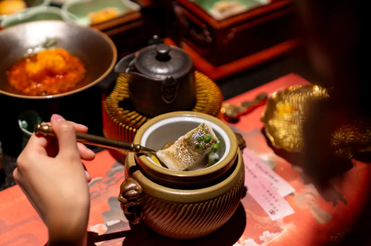 “把酒問花花不語,只有霜華伴月明”,餐廳最近在備受讚譽的秋宴之上,推出了全新的「霜華月明宴」。從節目編排、舞美燈光到應季定製的滋補川味,全面升級,呈現“一步一景、一舞一味、一宴一夢”的全景式禮樂盛宴。