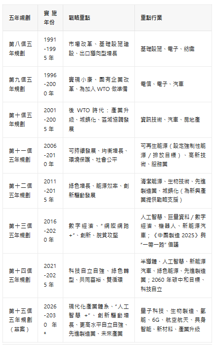 圖表 3:中國五年規劃:戰略重點與行業優先順序