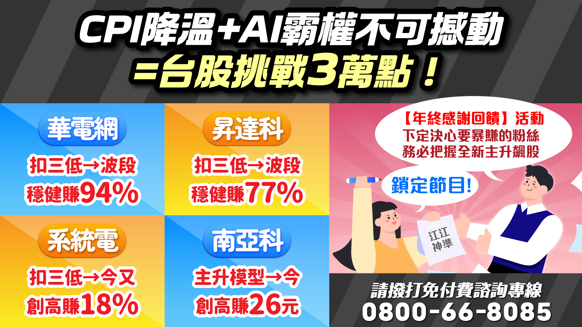 12/19(五)CPI降溫+AI霸權不可撼動=台股挑戰3萬點!