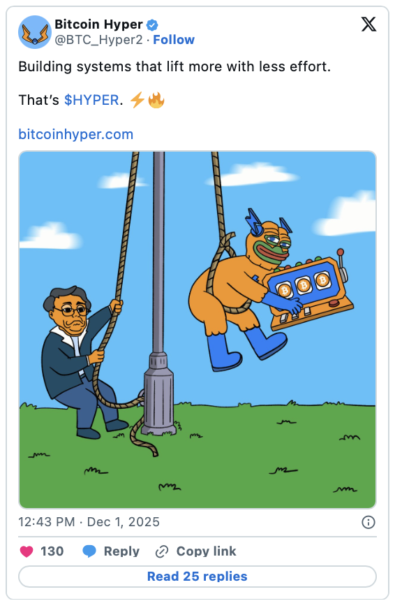 在此背景下,投資者日益關注能夠獨立於宏觀週期支撐比特幣的催化劑。市場對Bitcoin Hyper明年潛在上線的期待便是其中之一,部分人士將其視為通往比特幣持續、實用驅動需求的重要路徑。