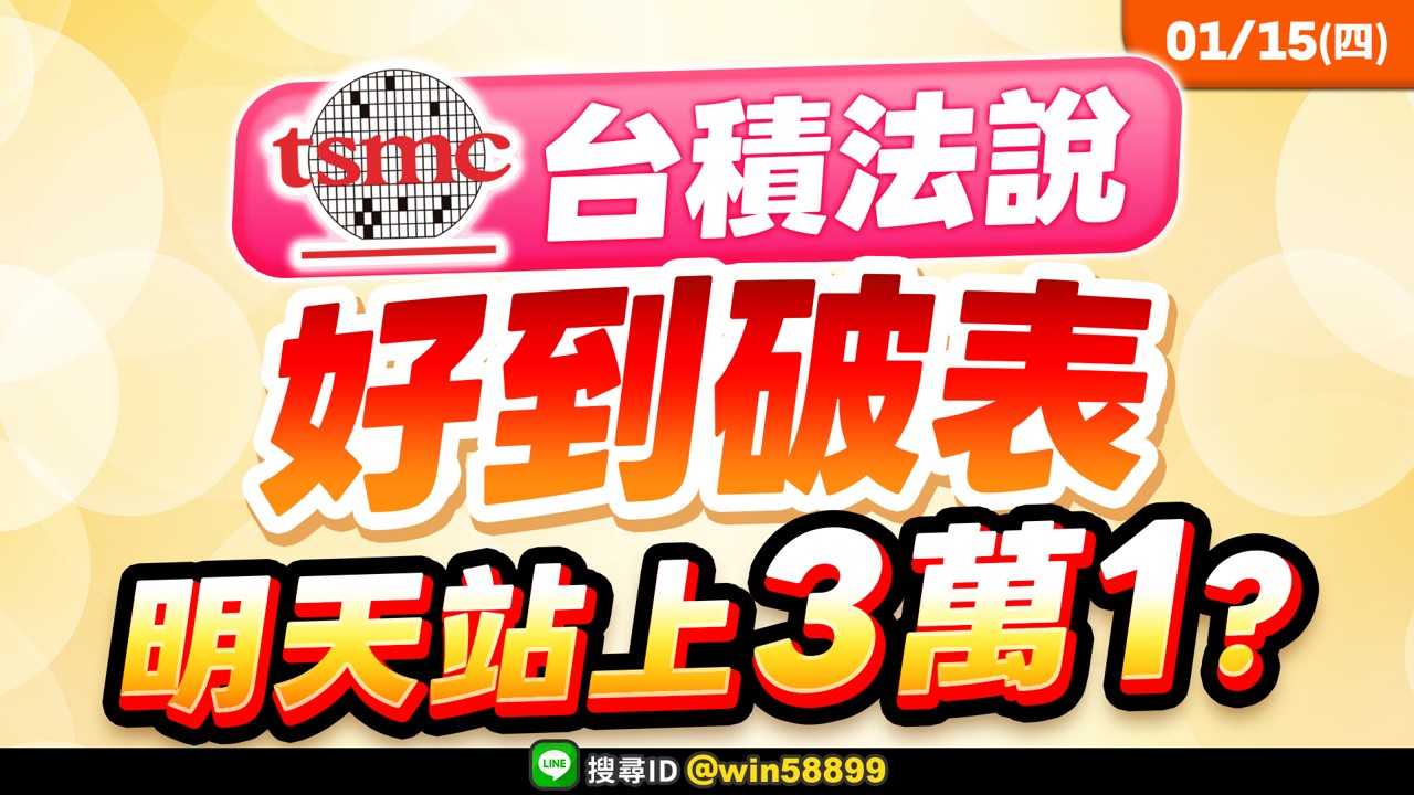 1/15(四)台積電法說好到破表→明天站上3萬1?拉積盤怎麼辦?
