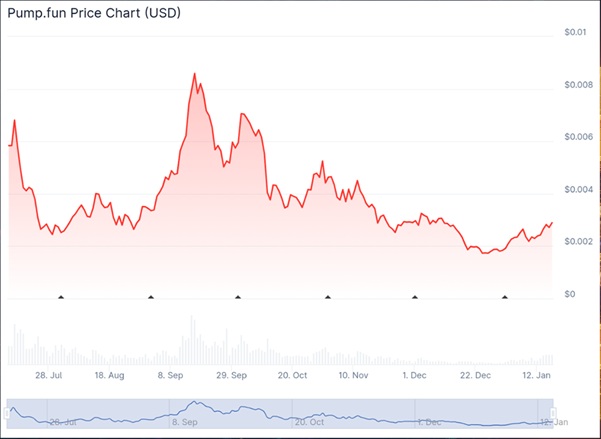 儘管 2025 年 Meme 板塊並未沖向新高度,但 2026 年初的交易資料釋放了積極信號。如前所述,Pump.fun 的原生代幣PUMP 在一周內暴漲 27%,日交易量突破 12 億美元。在平臺上線兩周年之際,這些指標均暗示著新一輪“超級週期”可能就在眼前。