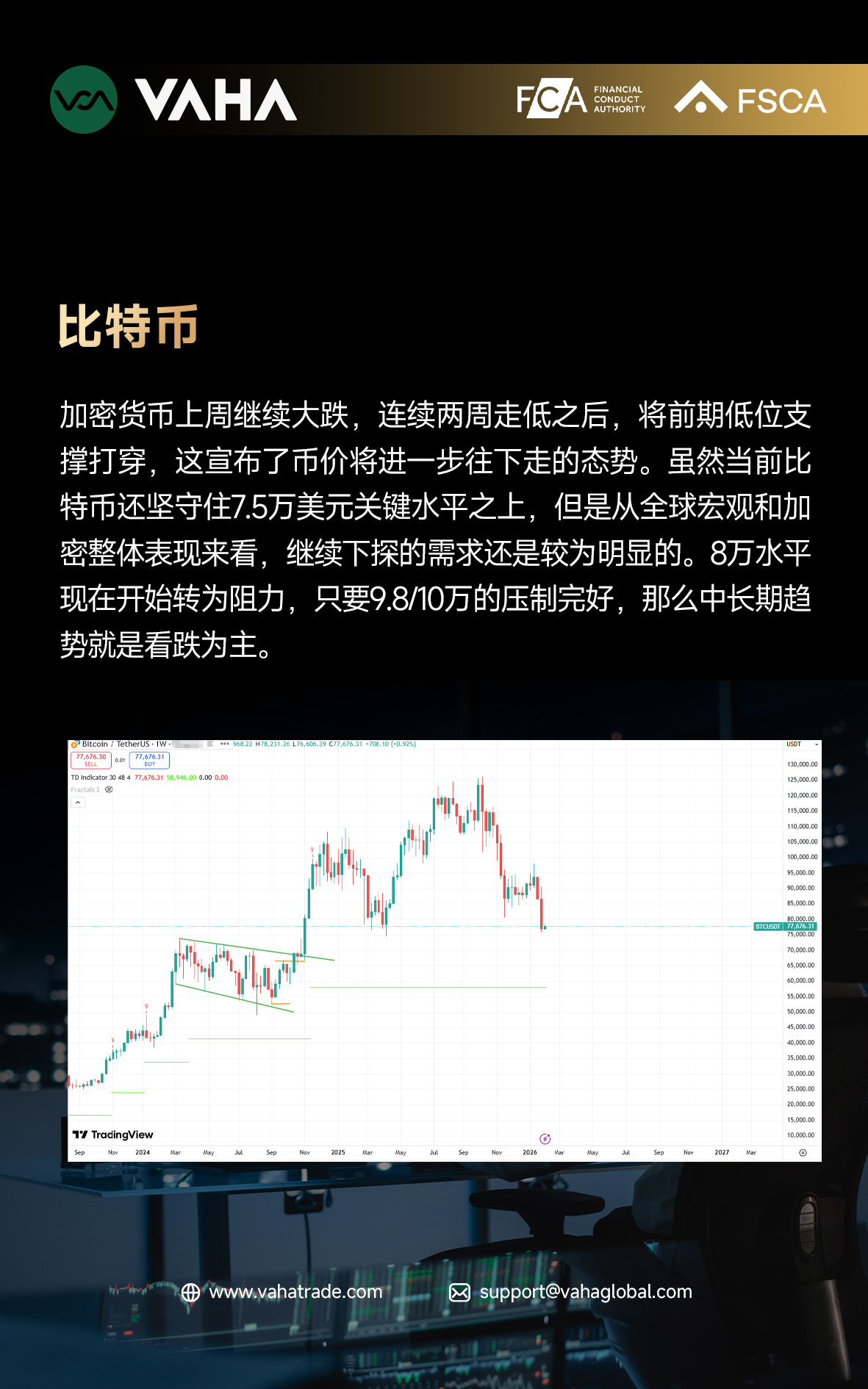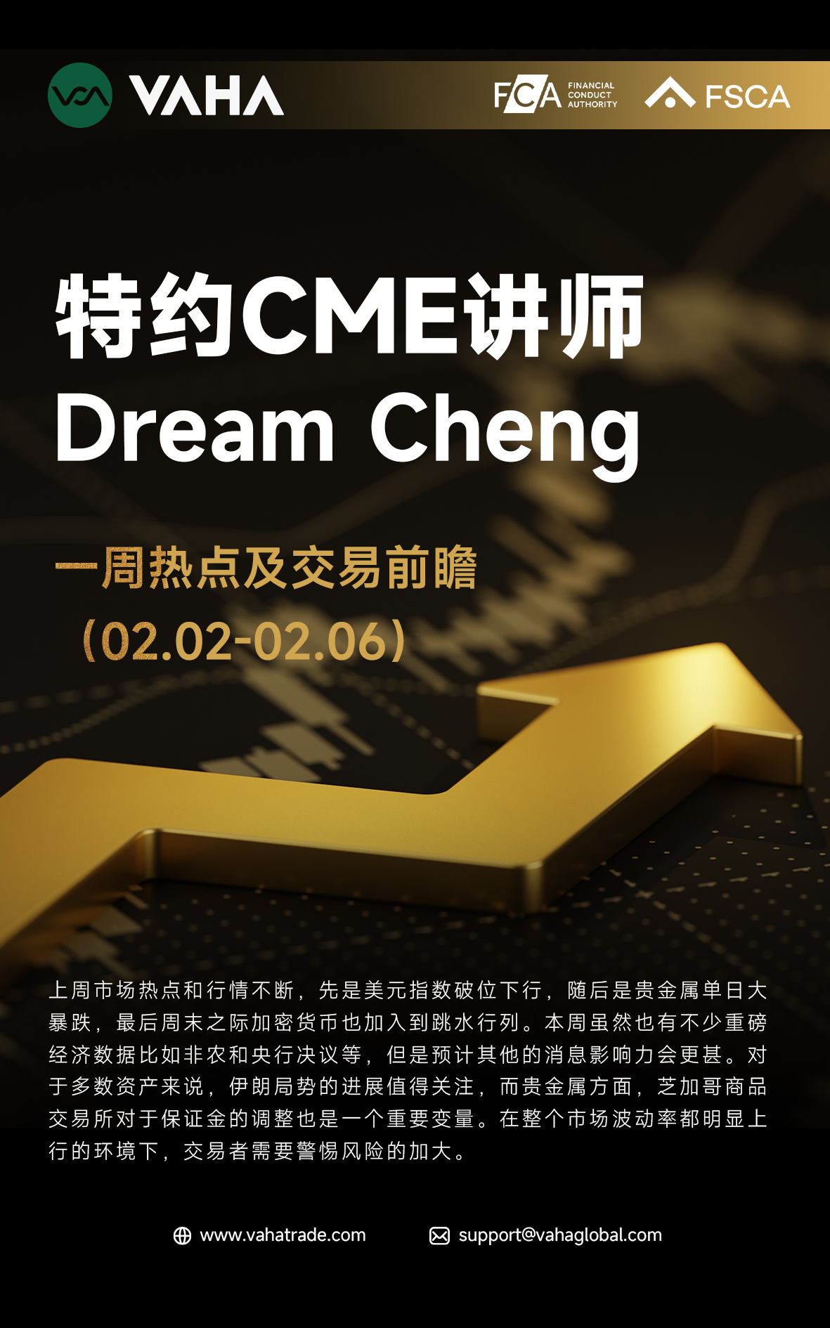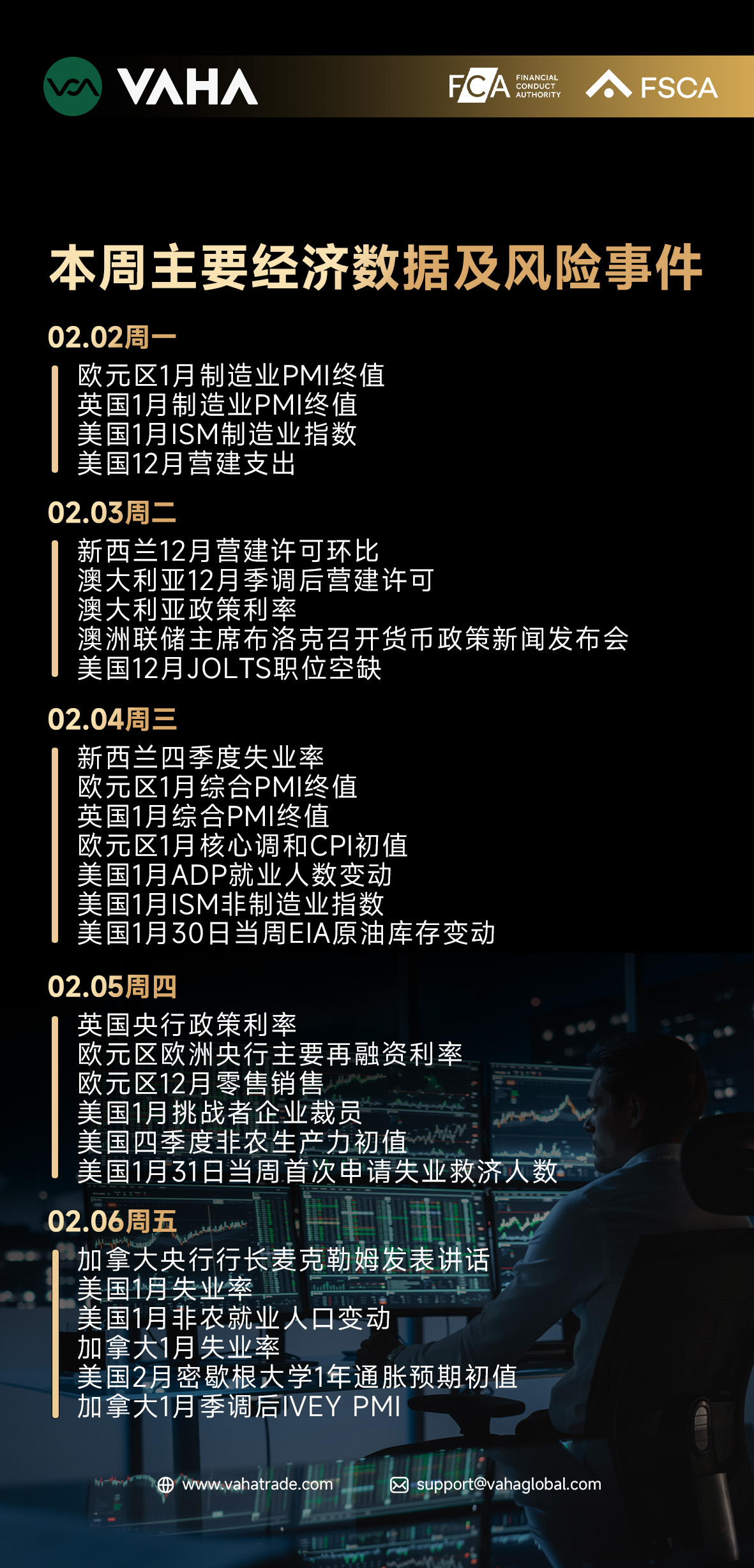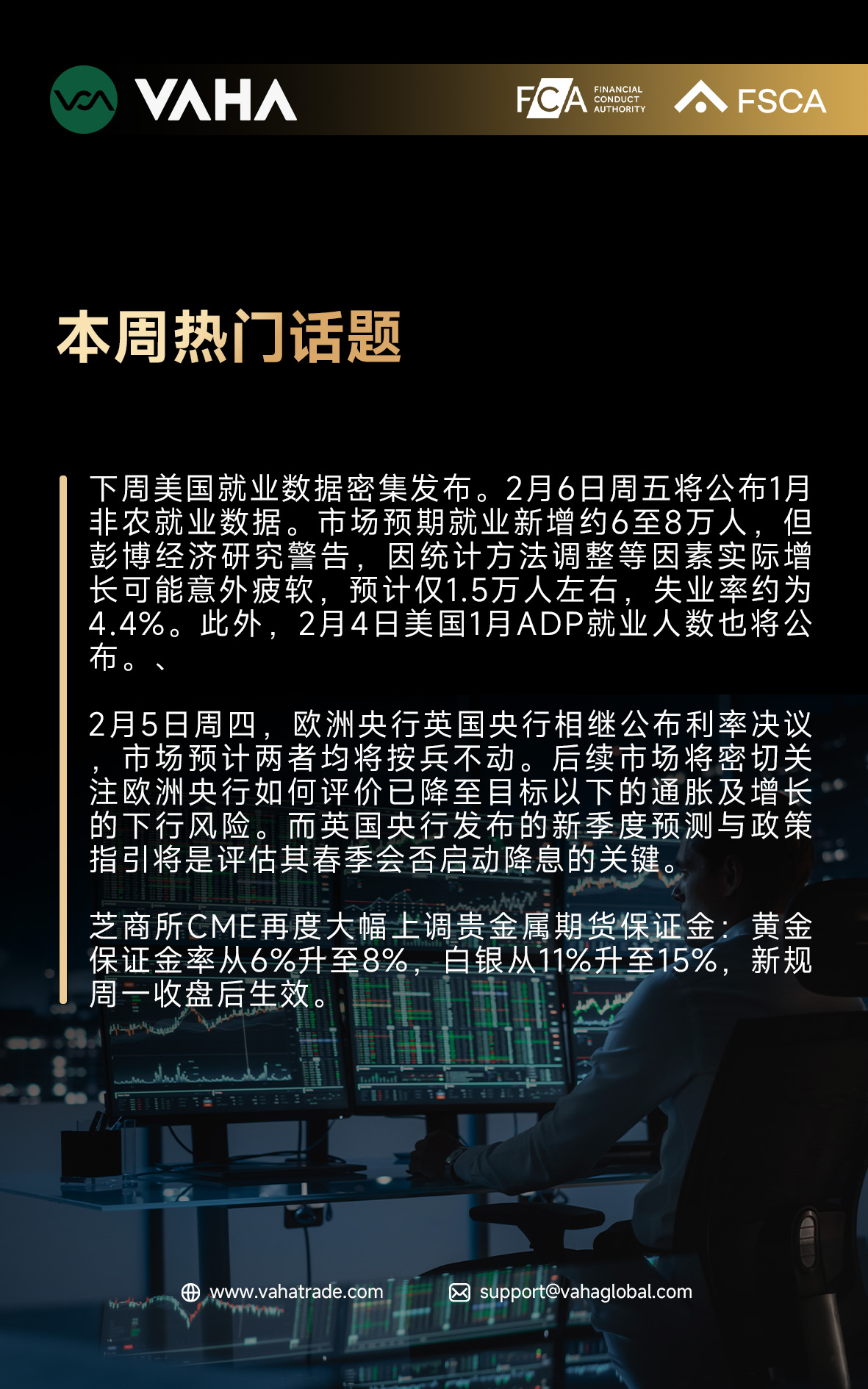 上週市場熱點和行情不斷,先是美元指數破位下行,隨後是貴金屬單日大暴跌,最後週末之際加密貨幣也加入到跳水行列。本週雖然也有不少重磅經濟數據例如非農和央行決議等,但是預計其他的消息影響力會更甚。對於多數資產來說,伊朗局勢的進展值得關注,在貴金屬方面,芝加哥商品交易所對於保證金的調整也是一個重要變數。在整個市場波動率都明顯上行的環境下,交易者需要警覺風險的加大。