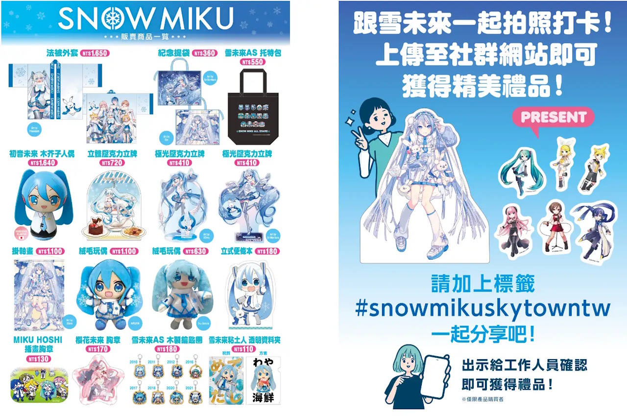 3. 指定主題標籤投稿活動(線上擴散),鼓勵參與者使用指定主題標籤(例如:#snowmikuskytowntw)發布貼文。出示發布畫面即可獲贈限量原創紀念品(數量有限,送完為止)。