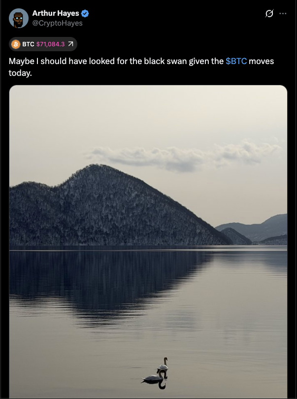 Arthur Hayes 近期在 X 平台發布了一張寧靜湖面上的白天鵝配圖,言詞間卻反諷地暗示「黑天鵝」早已現身。事實上,目前的市場環境確實處於多事之秋,美伊緊張局勢升溫、美元走強,以及科技股拋售潮引發的連鎖反應,導致加密市場自高峰以來蒸發了約 8,000 億美元市值。更令投資者憂慮的是,持有大量比特幣的 MicroStrategy 出現流動性疑慮,市場擔心其潛在的清算風險可能重演類似 2022 年 FTX 的崩盤慘劇。然而,Hayes 曾在今年 1 月指出,這場修正與小型金融危機將是「重啟印鈔機」的前奏,並預測比特幣在危機過後有望於年底前衝擊 25 萬美元,這為正處於黑暗期的投資者提供了一絲轉機。