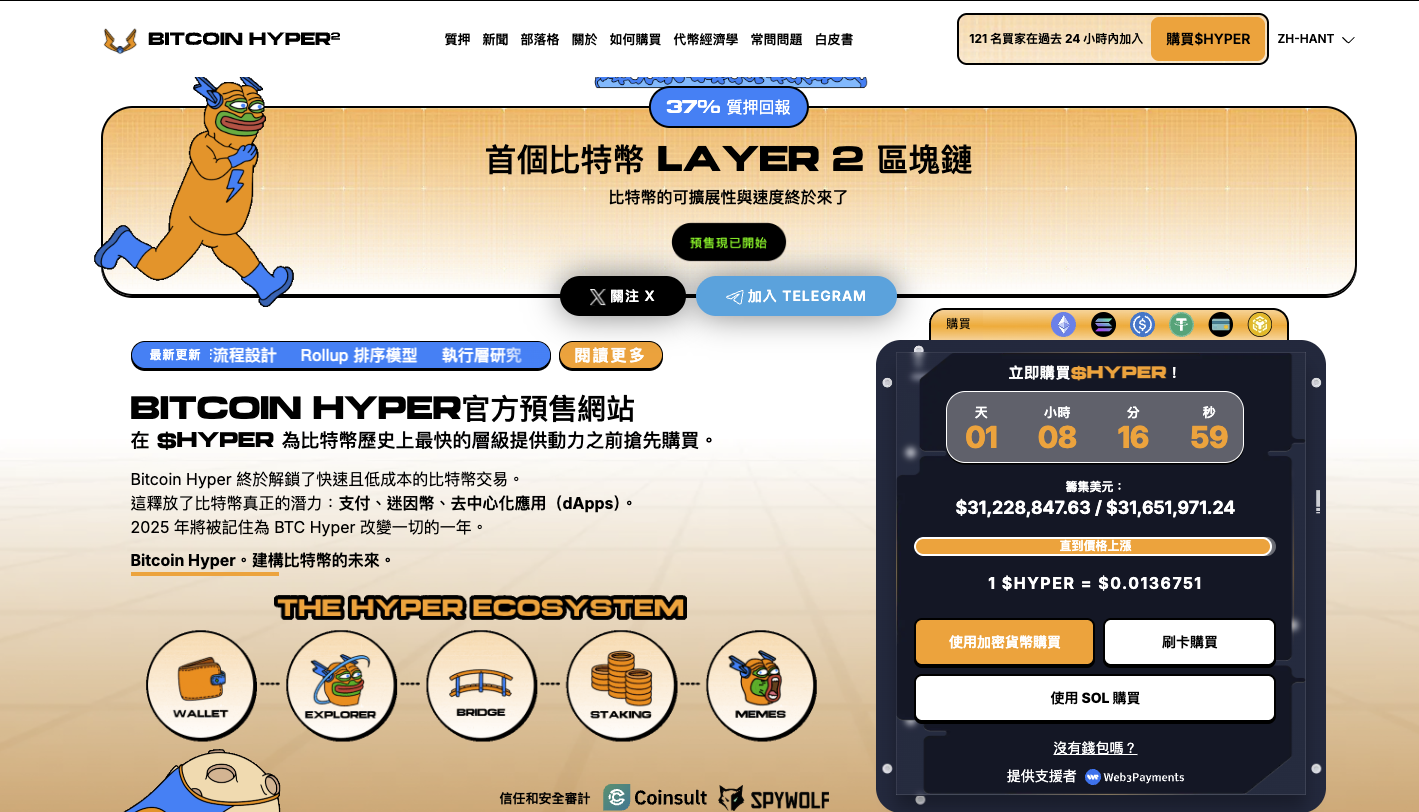 在主流幣種疲軟、巨鯨尋找新出口的背景下,比特幣二層網路(L2)的競爭已進入白熱化。Bitcoin Hyper ($HYPER) 正是這波浪潮中的佼佼者,其預售金額目前已強勢突破 3,100 萬美元,展現出極強的市場吸金能力。