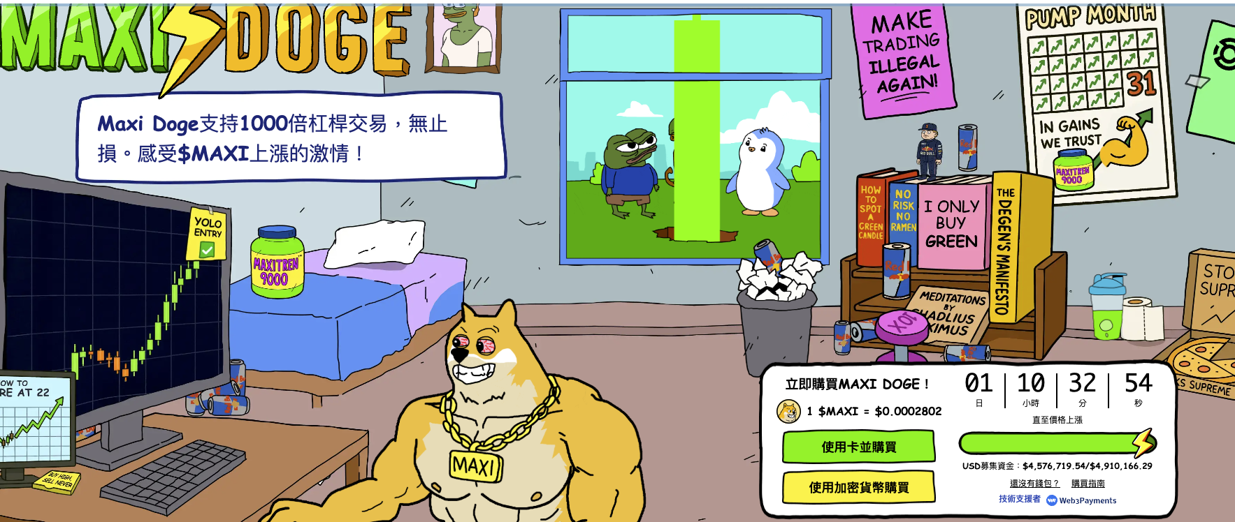 他主張核心做法在於堅定持有並在急跌中分批加碼,同時避免槓桿把波動放大成不可逆的本金傷害。另一方面,迷因市場也在不確定性中孕育新的資金故事,例如Maxi Doge($MAXI)以高動能敘事切入,預售與質押機制成為短線熱度的放大器,形成與宏觀恐慌並行的另一條市場支線。
