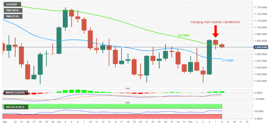 金價延續了從50日移動均線下方一周高位的回調,為前一天的看跌形態提供了理由。