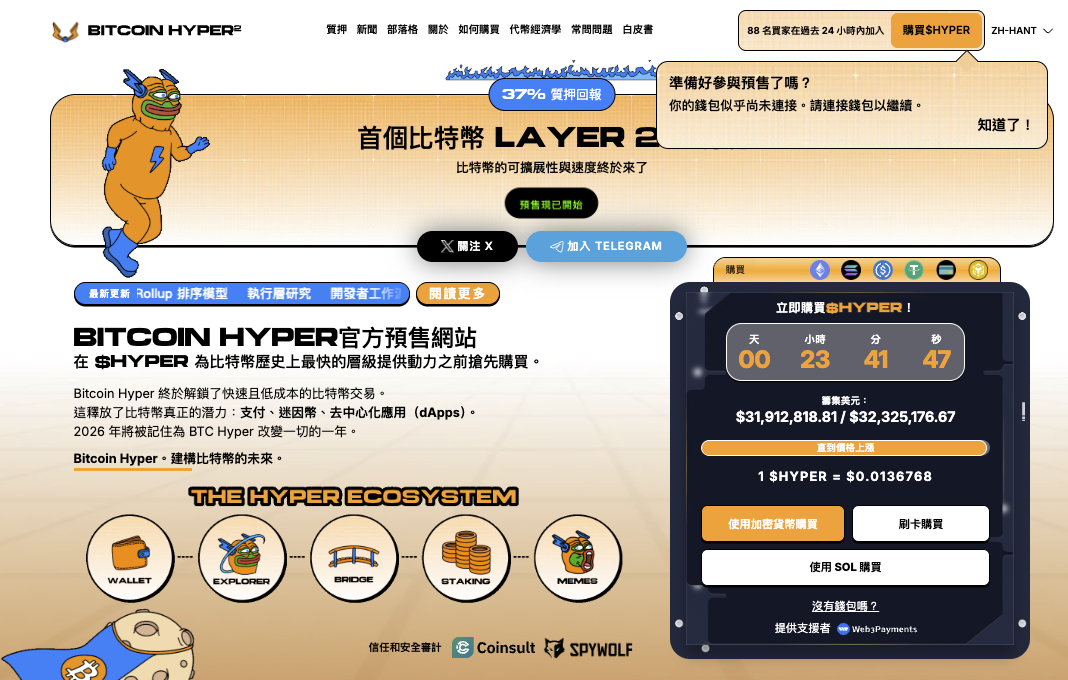 當市場資金開始追求利息,收益設計也不只出現在穩定幣上。部分新項目會以質押年化吸引早期參與者,提供比穩定幣更高的名目回報,但代價是承擔代幣價格波動與發行節奏的不確定性。近期Bitcoin Hyper的敘事便把焦點放在比特幣可用性擴展,主打以Solana虛擬機架構作為比特幣Layer2的運行底座,並以非託管橋接讓BTC能較低成本進入Layer2環境使用,涵蓋DeFi、遊戲、支付與智能合約等場景。這類敘事的吸引力在於把比特幣從單純儲值資產推向可參與鏈上經濟活動的角色,進而帶動資金在弱勢行情中仍願意投入預售與生態期待。
