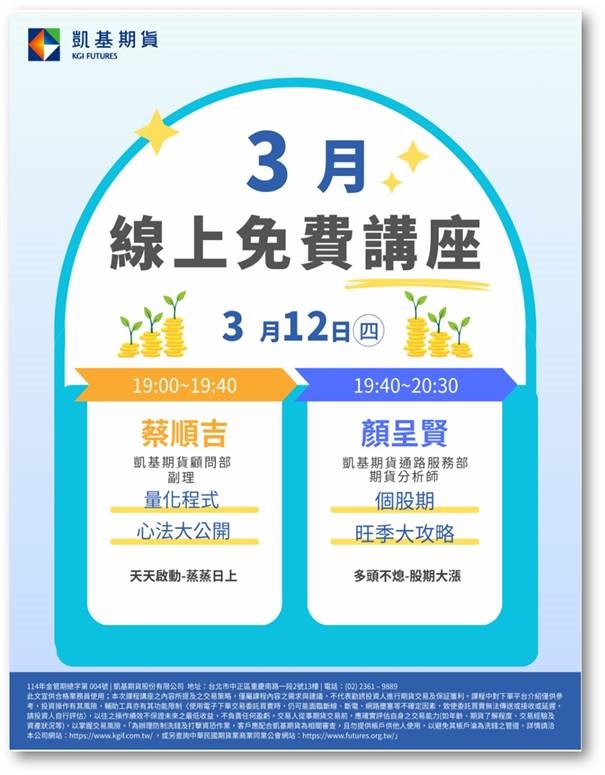 期貨開戶 - 免費增加賺錢的知識時間來了!歡迎一起來上課~~張玲玉 凱基期貨