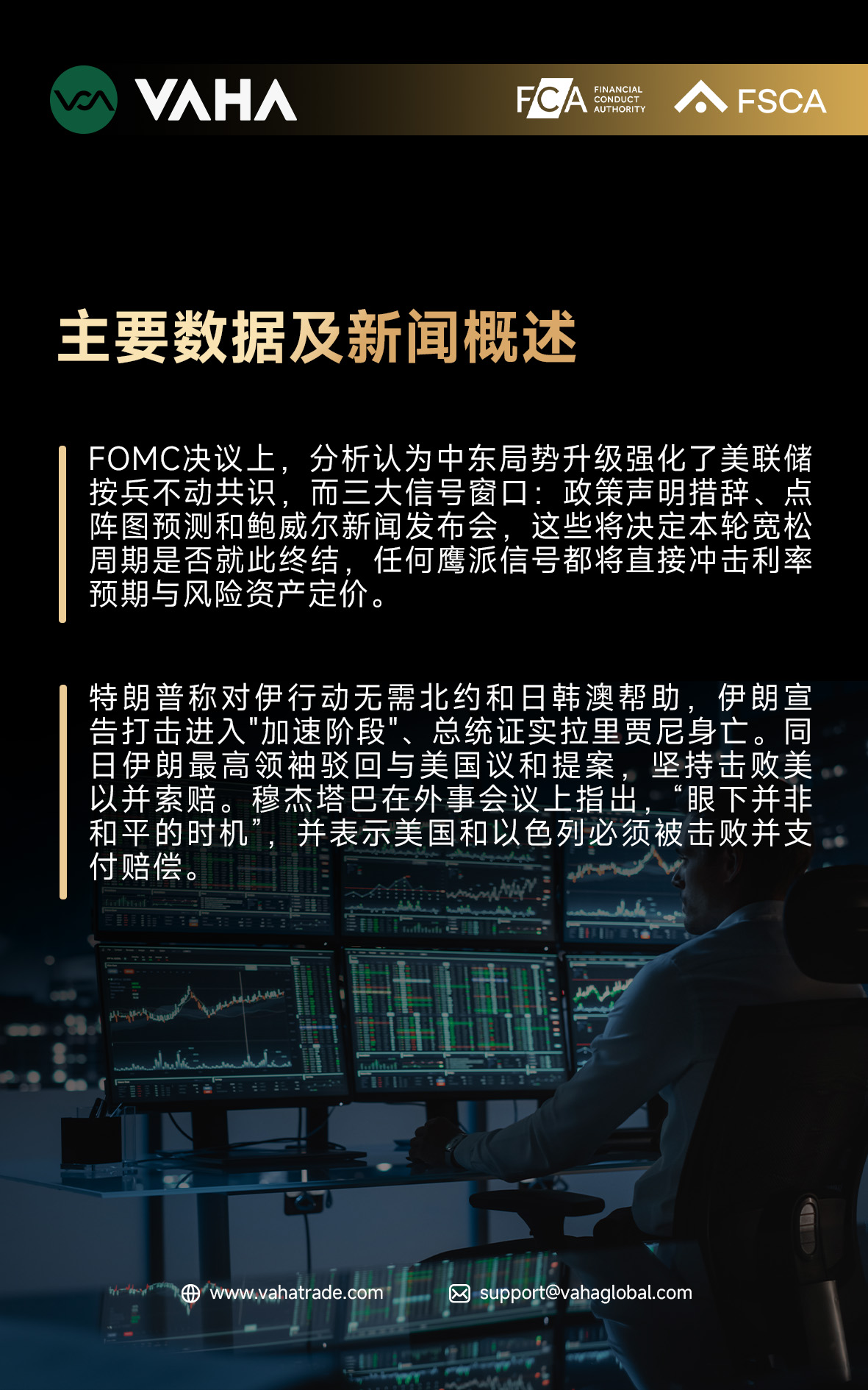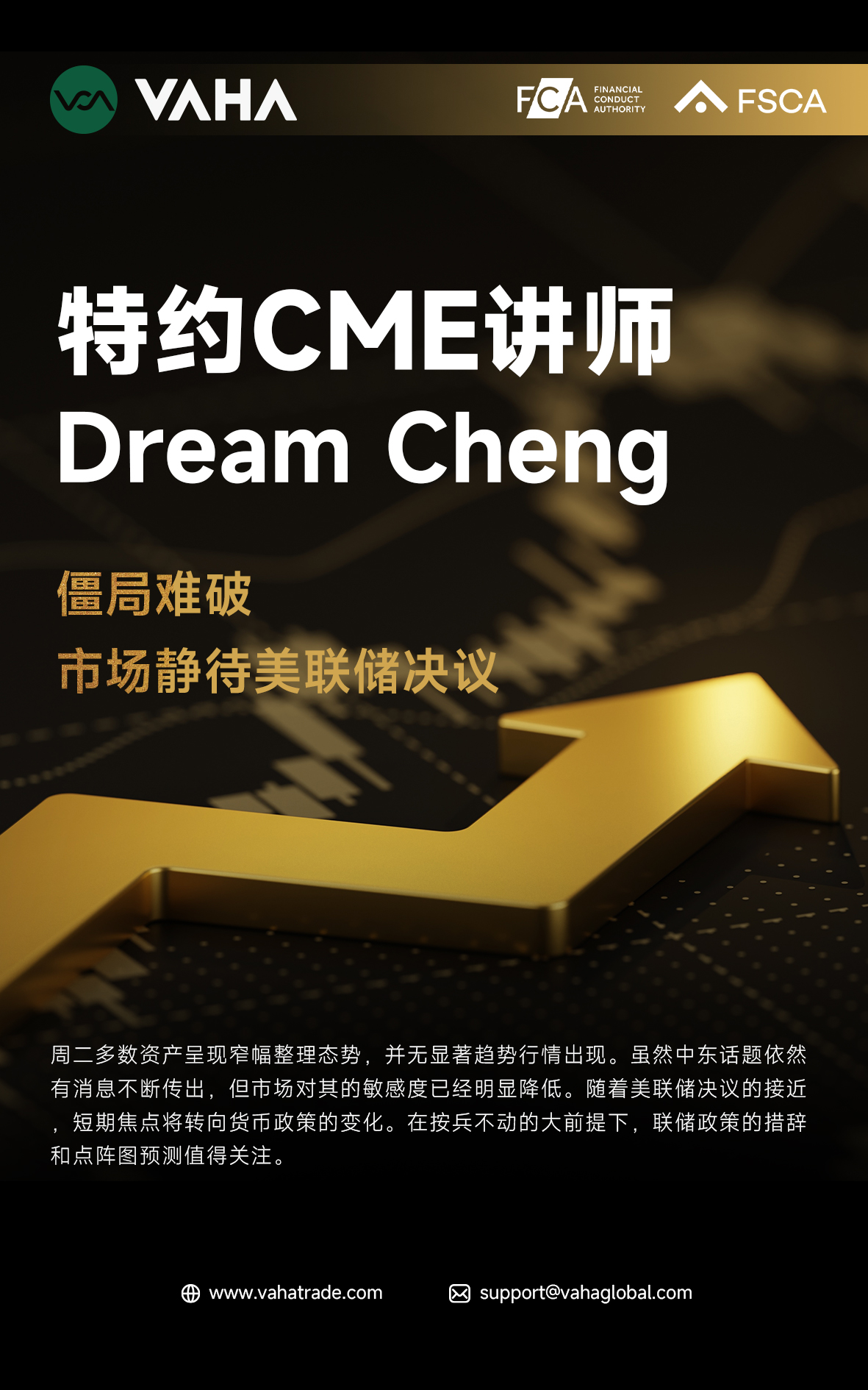 VAHA Global : 僵局難破 市場靜待聯準會決議VAHA Global2026/03/18•週二多數資產呈現窄幅整理態勢,無顯著趨勢行情出現。雖然中東話題依然有消息不斷傳出,但市場對其的敏感度已經明顯降低。隨著聯準會決議的接近,短期焦點將轉向貨幣政策的變化。在按兵不動的大前提下,聯邦儲備銀行政策的措詞和點陣圖預測值得關注。 #白銀#原油#美元指數#美元#日圓127人讚留言分享