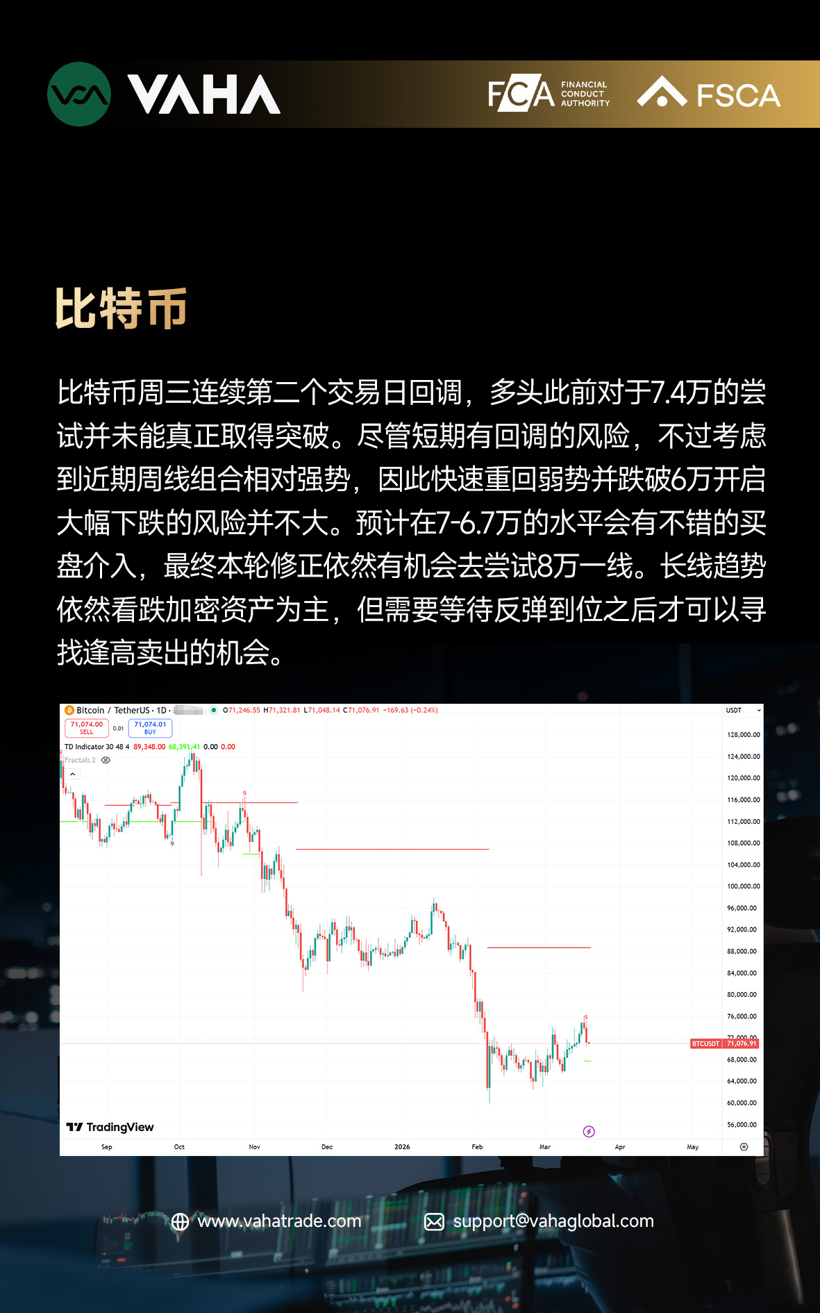 VAHA Global : 衝突再升級 聯準會年內降息機率大降VAHA Global昨天 10:24•週三中東局勢有再重燃和擴大化的跡象,油價重新彈回100美元附近。因以色列襲擊伊朗最大天然氣設施,伊朗宣布對沙烏地阿拉伯、阿聯酋和卡達能源設施打擊目標以作為報復。而聯準會決議如期按兵不動,整體呈現相對鷹派態勢,年內聯準會降息一次的機率也僅有50%左右。 #原油#黃金#美元指數#比特幣71人讚留言分享