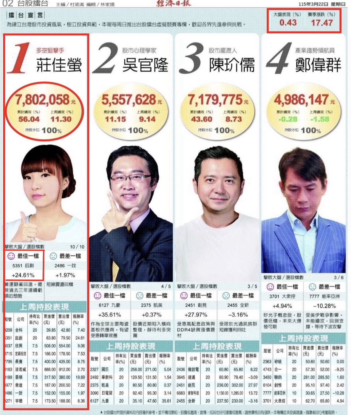 經濟日報台股擂台賽最新戰報