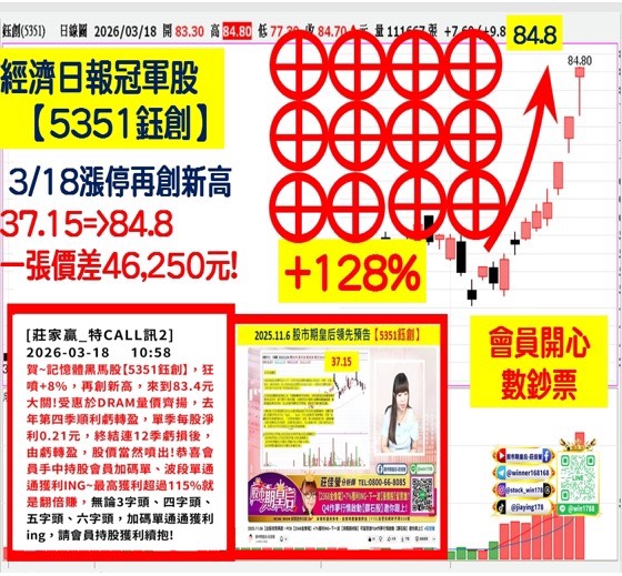 🔶【5351鈺創】一周狂飆+26.4%會員領先布局大賺+124%👏