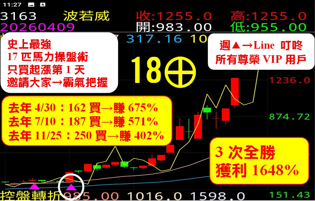 ♦️波若威:1648%今天不能追高囉