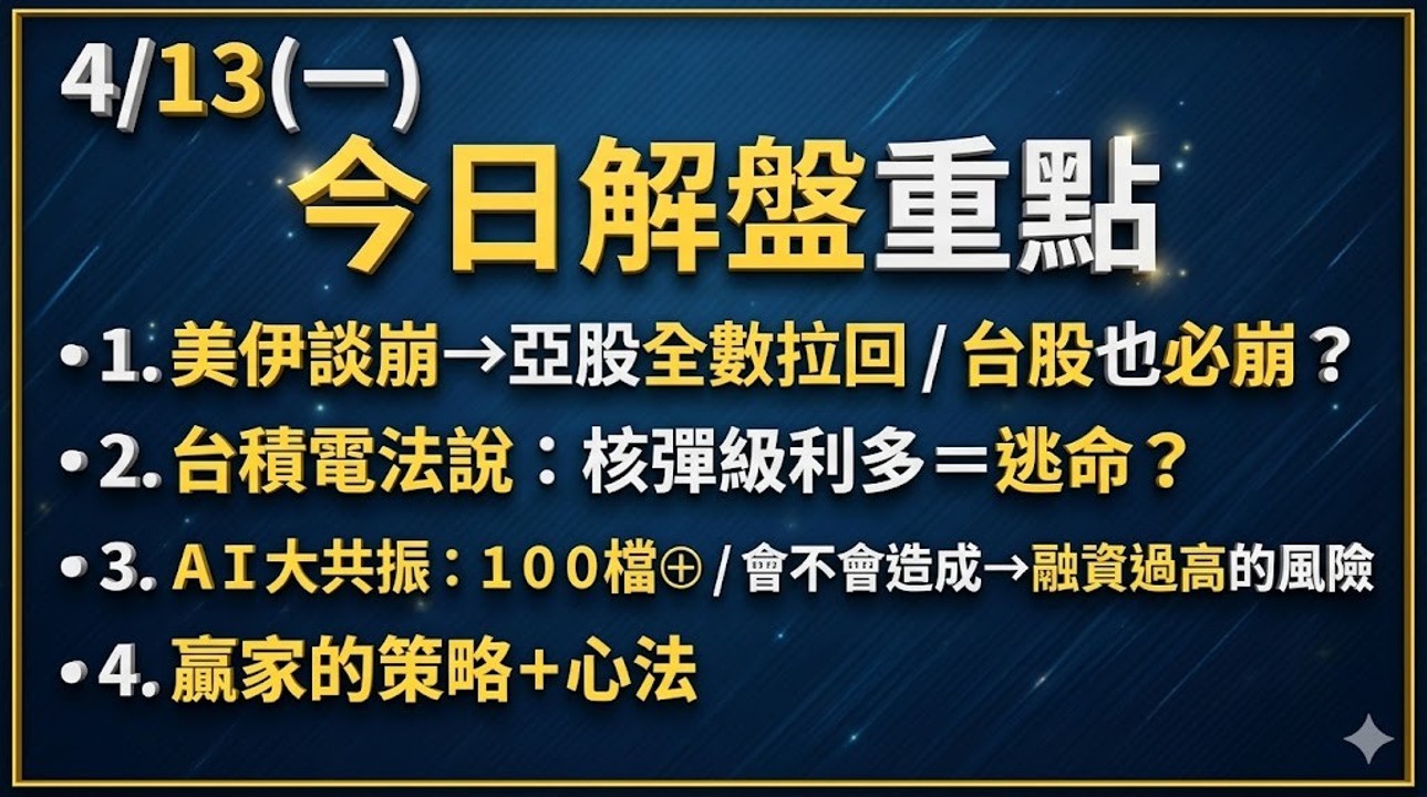 4/13(一)美伊談崩!亞股全數拉回→台股也必崩?
