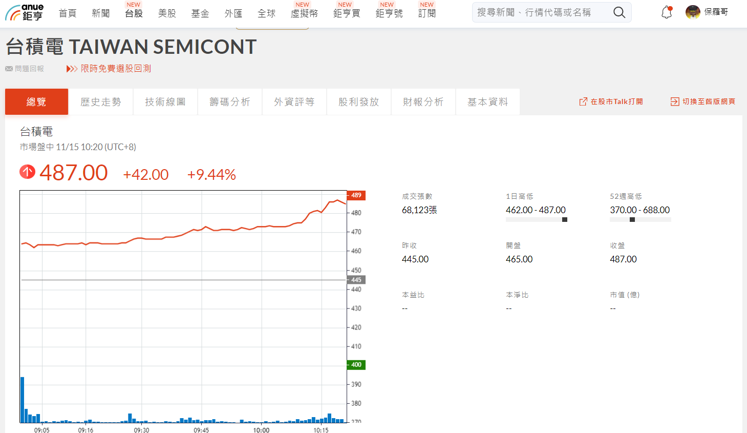 台積電因為巴爺爺的投資41E美元 大漲9%多 直逼漲停 指數看回不回尬空!