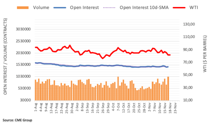WTI原油價格週四繼續走低,重新回到82.00美元區間,加劇了週三的回調。這一舉措伴隨著未平倉頭寸和交易量的上升,並保留了短期內進一步下跌的可能性,並在80.00美元的關鍵關口獲得即時支撐。