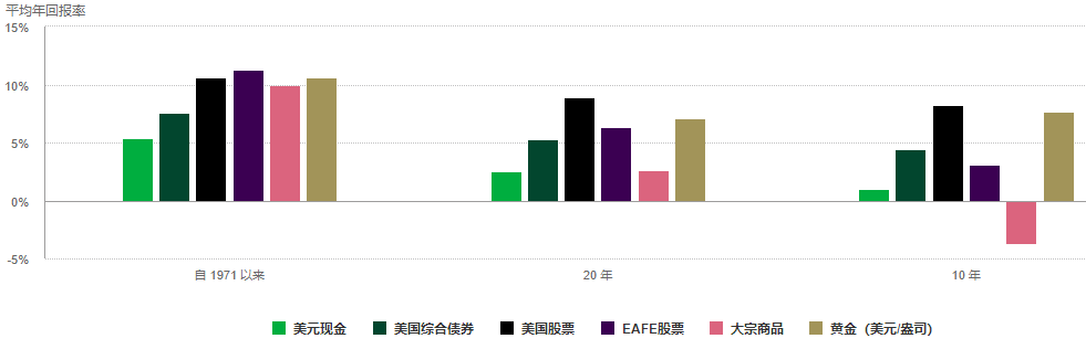 長期來看,黃金的回報率一直喜人,經常超過主要資產類別。