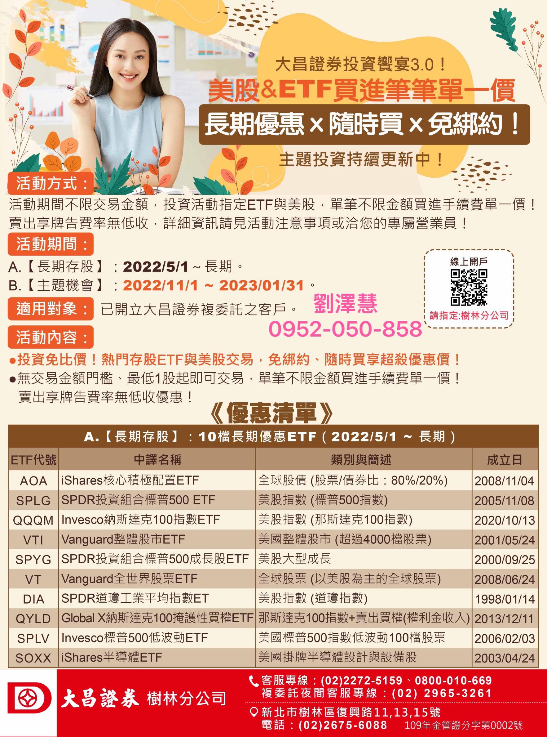 【📷📷大昌證券投資饗宴3.0!】 精選30檔美股與ETF手續費優惠標的更新!