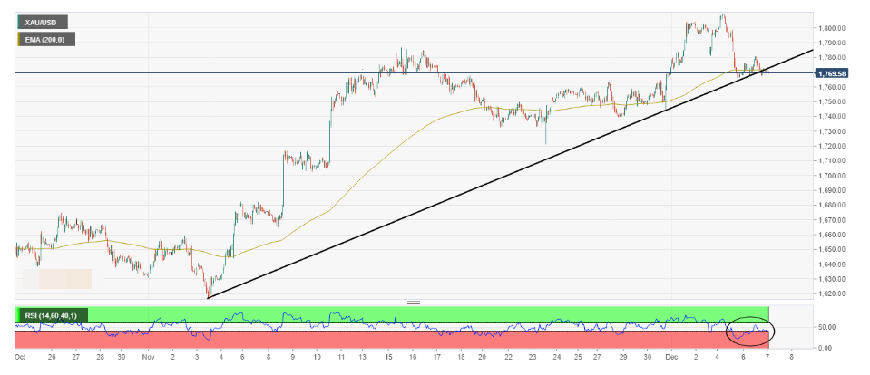 若進一步下行至100週期移動均線約1764美元至關重要。上升趨勢線支撐位1761美元將是賣家雷達上的下一個目標。