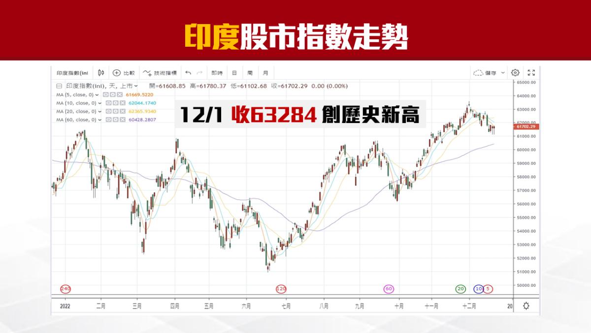 全球歷經升息、通膨與經濟疲軟等態勢;反觀印度股市獨占鰲頭,Sensex指數近日來到歷史高點63,284點,短線漲幅明顯,目前指數評價雖然不便宜,但放眼未來10至30年發展潛力,可望成為世界製造工廠,股市如有短暫修正機會,均可把握時機進場。