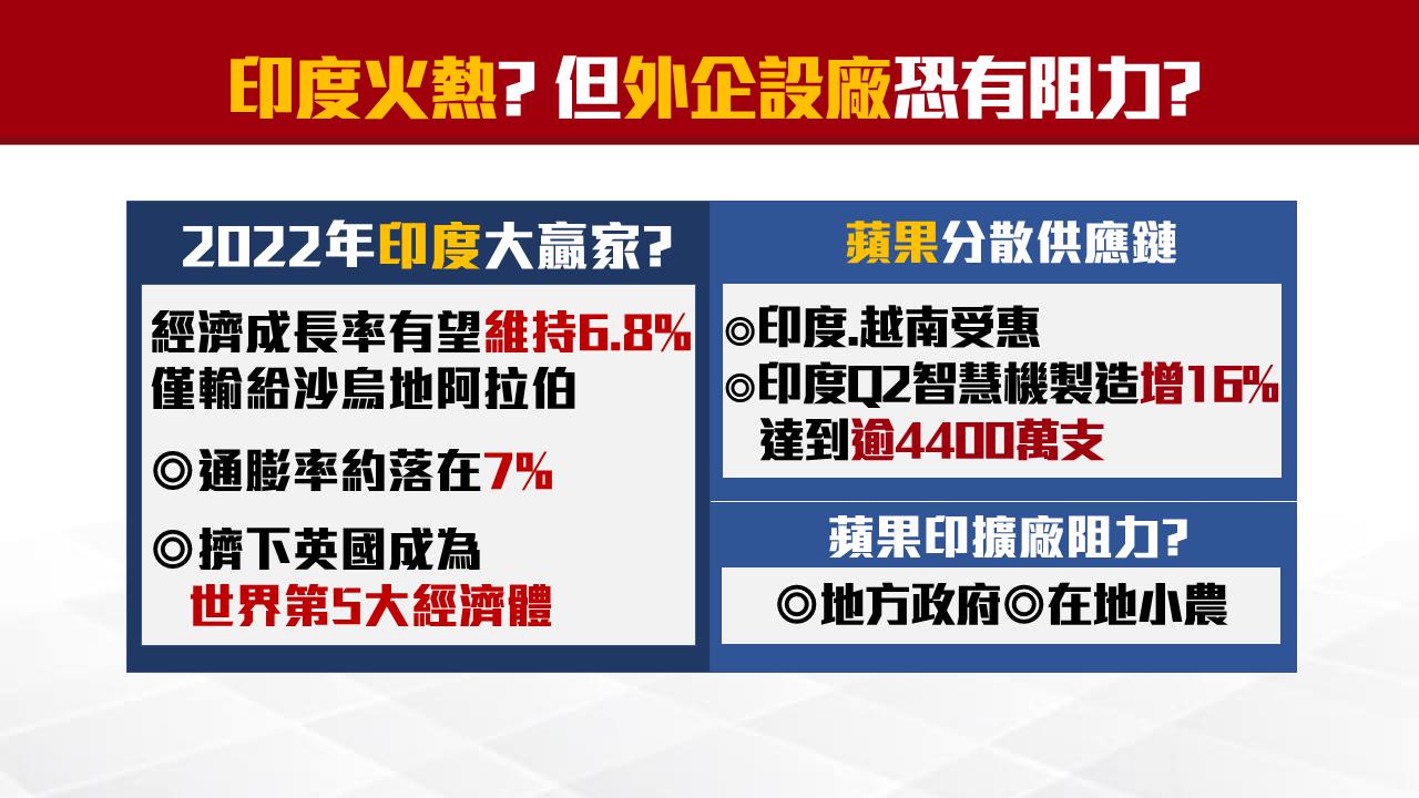 外界都認為,印度是蘋果下一個 iPhone 重要的生產基地,蘋果也希望藉印度降低對中國勞動力的依賴。但蘋果的印度擴廠計畫可能不會太好過,最大阻力來自小農民與地方官員。蘋果這幾年極力想降低依賴中國工廠,尤其新冠肺炎發生後,中國政府一連串政策,都加速蘋果轉移供應鏈的腳步。蘋果在許多國家都逐步設廠,除了印度,還有越南、印尼等地,印度人口紅利可望成為蘋果在中國以外擴大 iPhone 生產的希望。但印度農民與地方官員恐讓蘋果印度擴廠計畫遇上極大阻力。所謂「地方政府與中央政府的競爭」,且還涉及「小規模土地擁有者」的立場。印度有三級政府,分別為中央、州、地方,三級間時常發生衝突,而越來越多權力下放到地方政府後,衝突就更混亂。