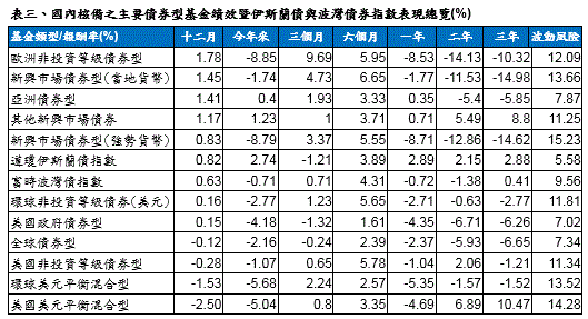 主要債券及平衡型基金:在美元續疲下,新興債表現穩健