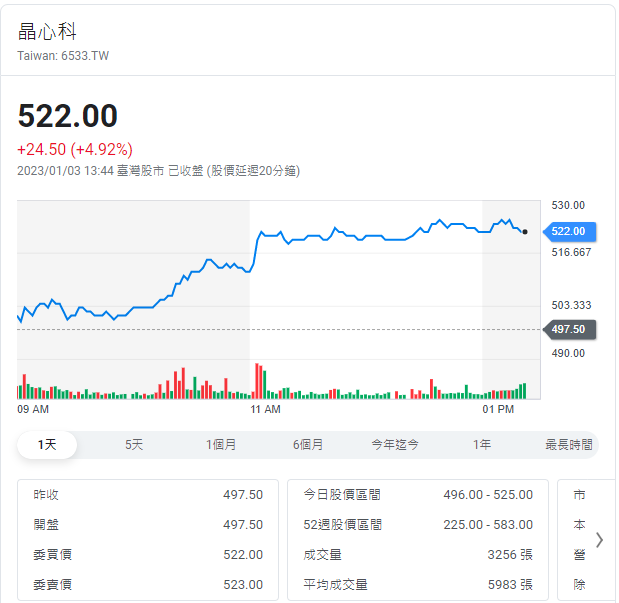 #6533晶心科 + 4.92%