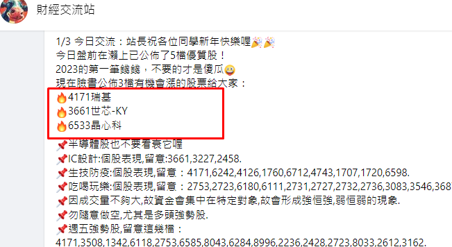 2023年第一個交易日,大盤開低走低下跌逾百點,生技類股展現高人氣,表現相對亮眼,早盤由獲利績優生保瑞帶頭領漲,盤中漲幅一度超越4%,檢測試劑股瑞基漲幅也超過3%;高價的藥華藥、長聖、共信-KY、美時、大江、智擎、醣基、泰福-KY、台新藥、大樹等漲幅都超過1%。