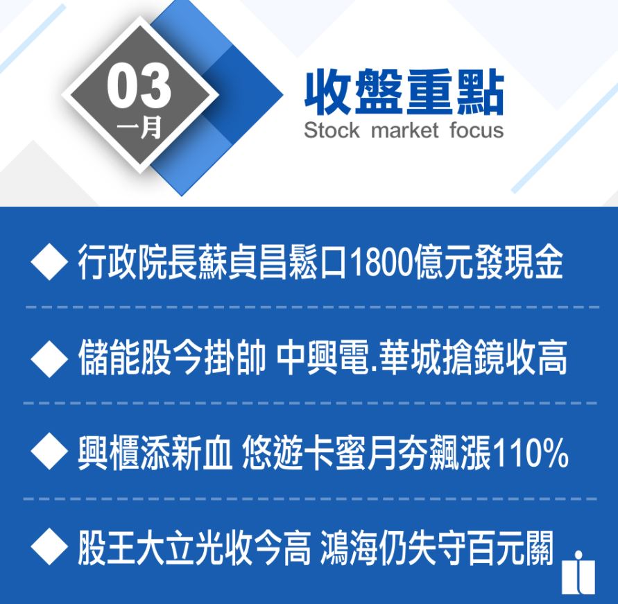 再生能源與儲能股表現閃亮,中興電、華城、廣錠大漲7~8%,森崴能源強漲6%,上緯投控、亞力勁揚3~4%。