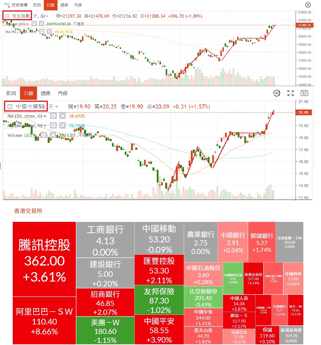 一張圖說明 中國髮夾彎解封後的威力!股市總是提前反應,兩個月前還在擔心陸港股破底,現在看來呢?解封只是第一步,後面別小看中共的振興經濟的政策執行力道(可留意房地產與基礎建設相關)技術面目前尚無破綻,不預設高點,短線可以用5日10日線作為獲利出場條件,祝大家操作順利~