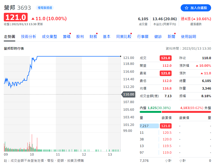 #營邦(3693): 恭喜 我們都一起發財啦。獲利滿滿。鎖利獲利還能繼續抱。還沒漲停喔,等波漲幅滿足點約在160,感謝12月營收仍續增,抱抱。