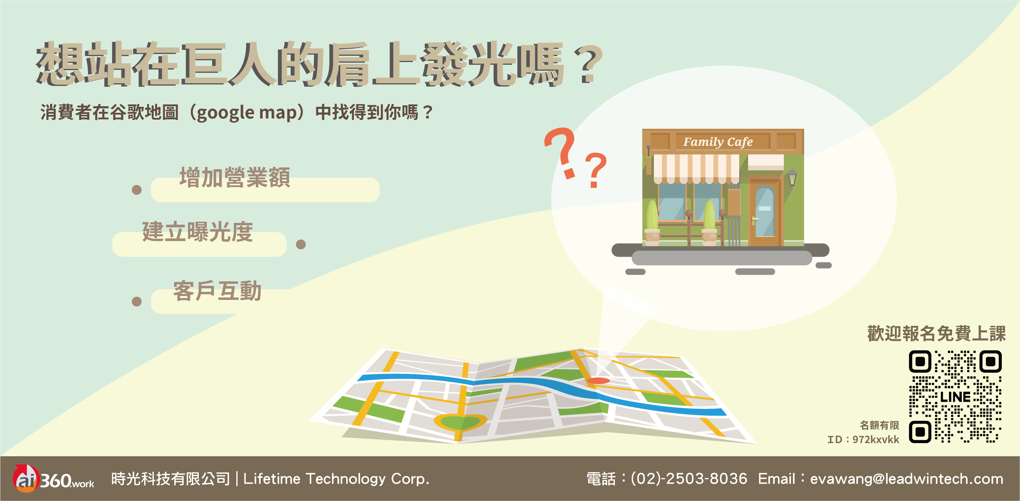 更進一步教你如何編輯,更新你的商家資料,讓你學會如何自己運用谷歌地圖,建立曝光度, 與客戶互動,增加營業額。歡迎來電報名免費上課。