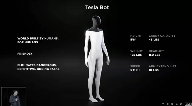 今年8月,馬斯克在特斯拉人工智慧智慧大會上宣佈,將於2022年發佈一款「特斯拉機器人」,使之成為家庭生產力好幫手。
