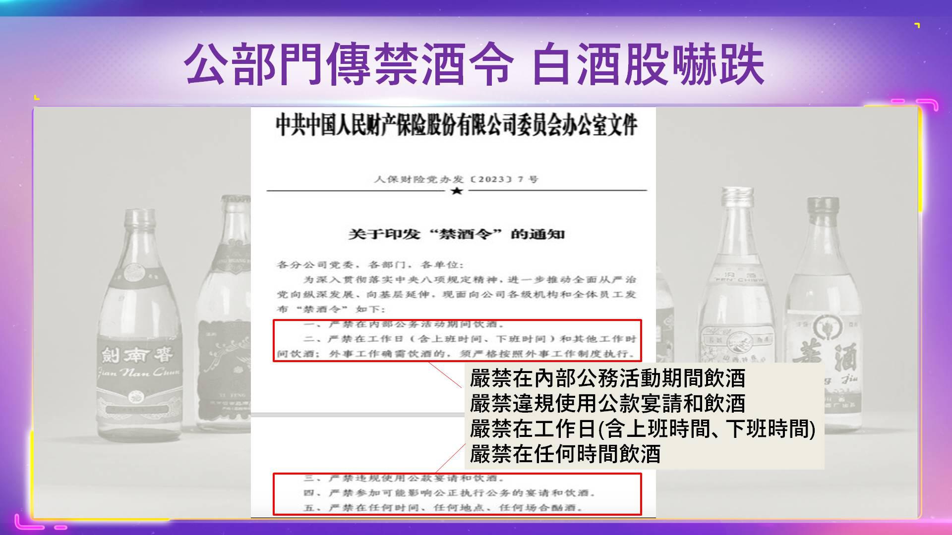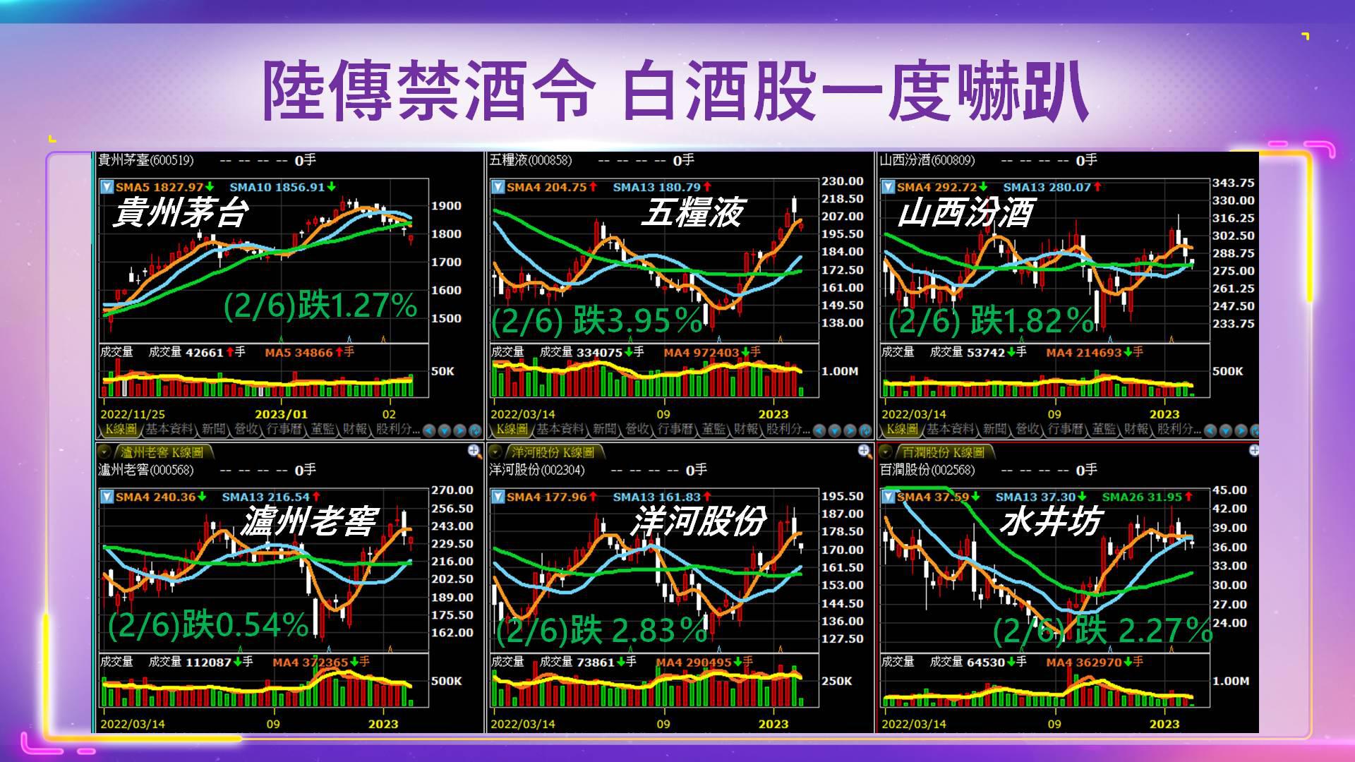 拖累大陸市值近人民幣5兆(約新台幣22兆元)白酒板塊6日全線殺跌;五糧液、洋河股份、貴州茅台分別收跌3.95%、2.83%、1.27%。7號也只出現小幅反彈。