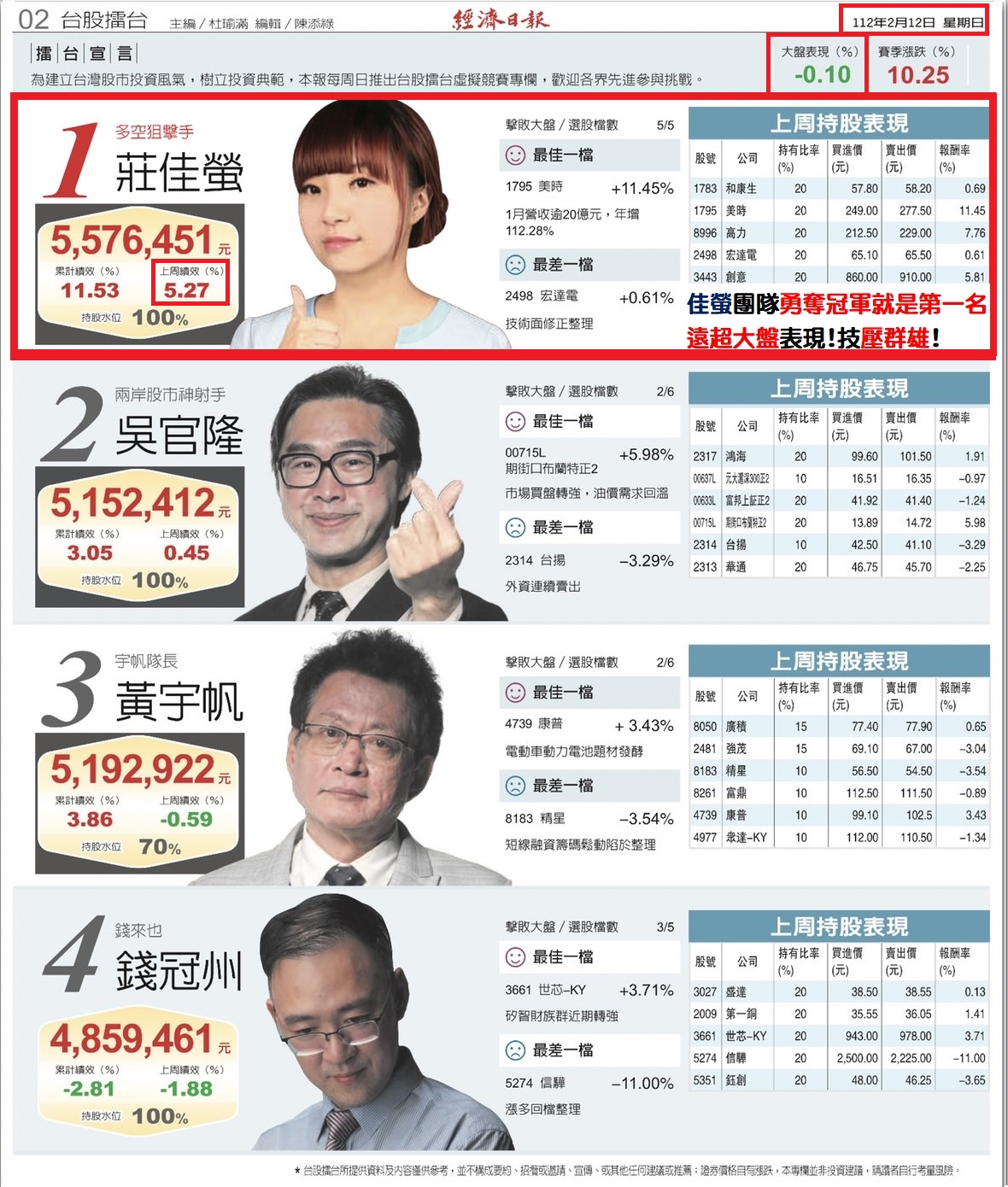 本周經濟日報台股擂台賽