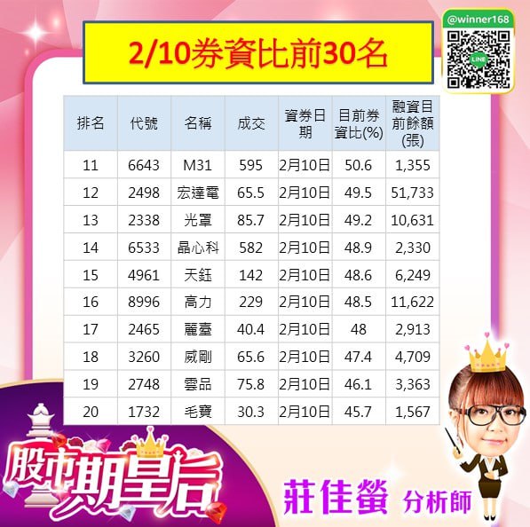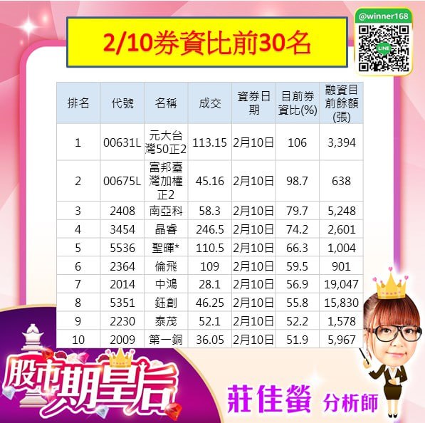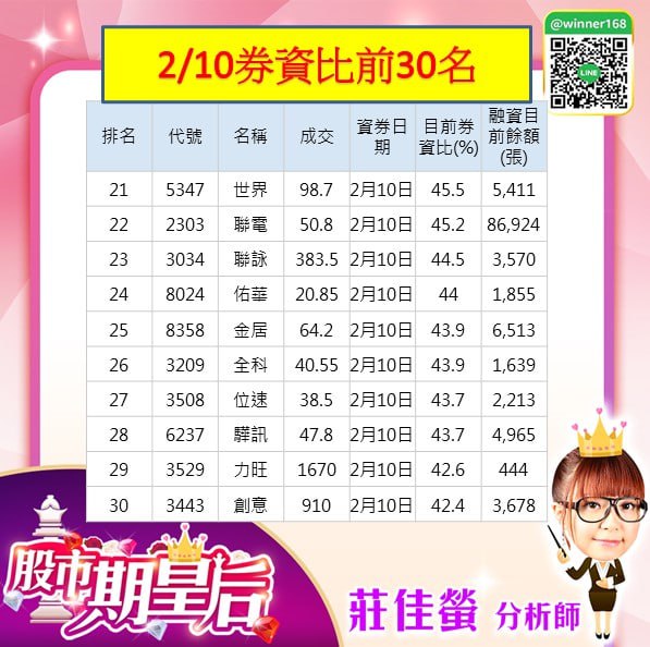 以下提供融券張數,跟券資比較高的個股分享給大家!