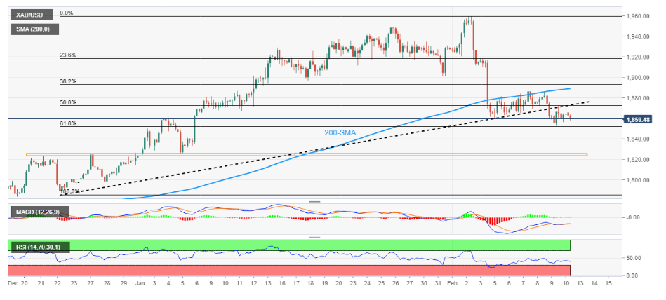 美國通脹公佈前,金價波動率下降,以提供新的動力。目前金價依然承壓於1860美元附近,因為市場情緒惡化提振美元在週一早些時候反彈。此外中美關係擔憂以及美國1月通脹率數據前焦慮也給現貨黃金XAU/USD帶來下行壓力。