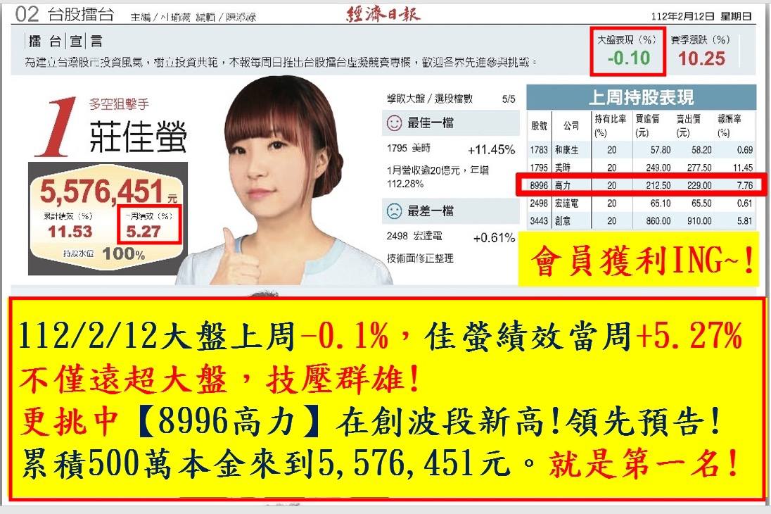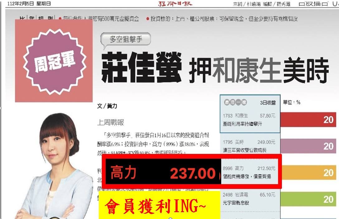 當然醞釀軋空機會!預估全年營收,有望成長三成,股價當然會有空間,佳螢不僅帶領會員進場,經濟日報更公開預告!上週就改寫新高!最強飆股也是他!所有的會員粉絲都可以驗證在驗證!