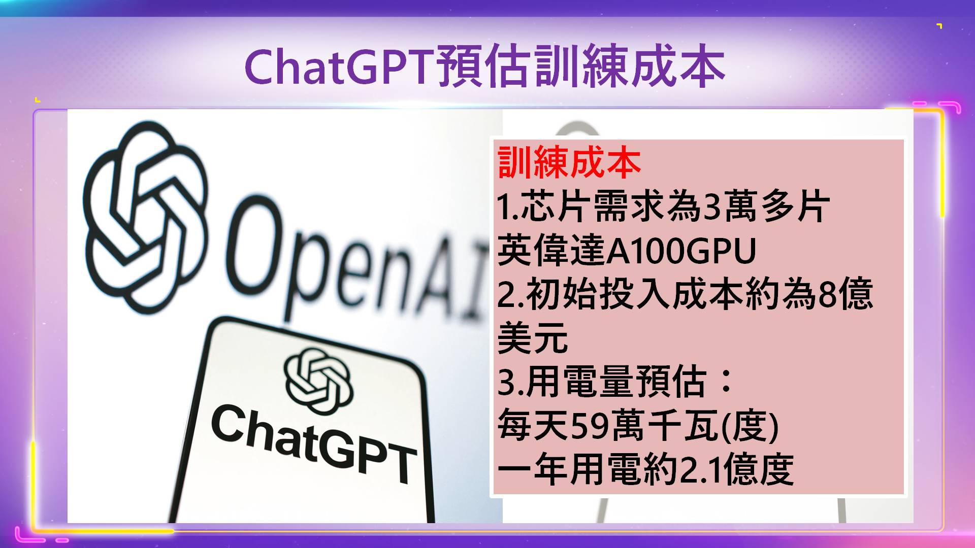 2023年1月平均每天约有1300萬獨立訪客使用ChatGpt,對應晶片需求為3萬多片英偉達A100GPU,初始投入成本约為8億美元。以台灣高壓用電均價3.1039元/度,計算每日電費約182萬台幣。一年下來電費要6.6億。用電2.1億度。台積電三奈米年用電量大約70億度,也可見光是訓練ChatGpt的軟體成本,就已經是台積電整個大廠區的1/30。