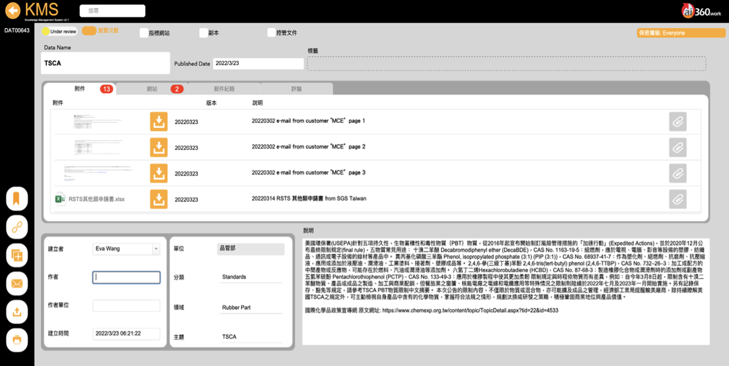 每當有即時或是重要資訊公佈需求時,公司內每個人都可以將相關資料放在 ai360 KMS 知識管理系統平台上與大家分享,不需要張貼在傳統的佈告欄上,除了環保,也增加了時效、避免遺漏。更可以隨時更新。