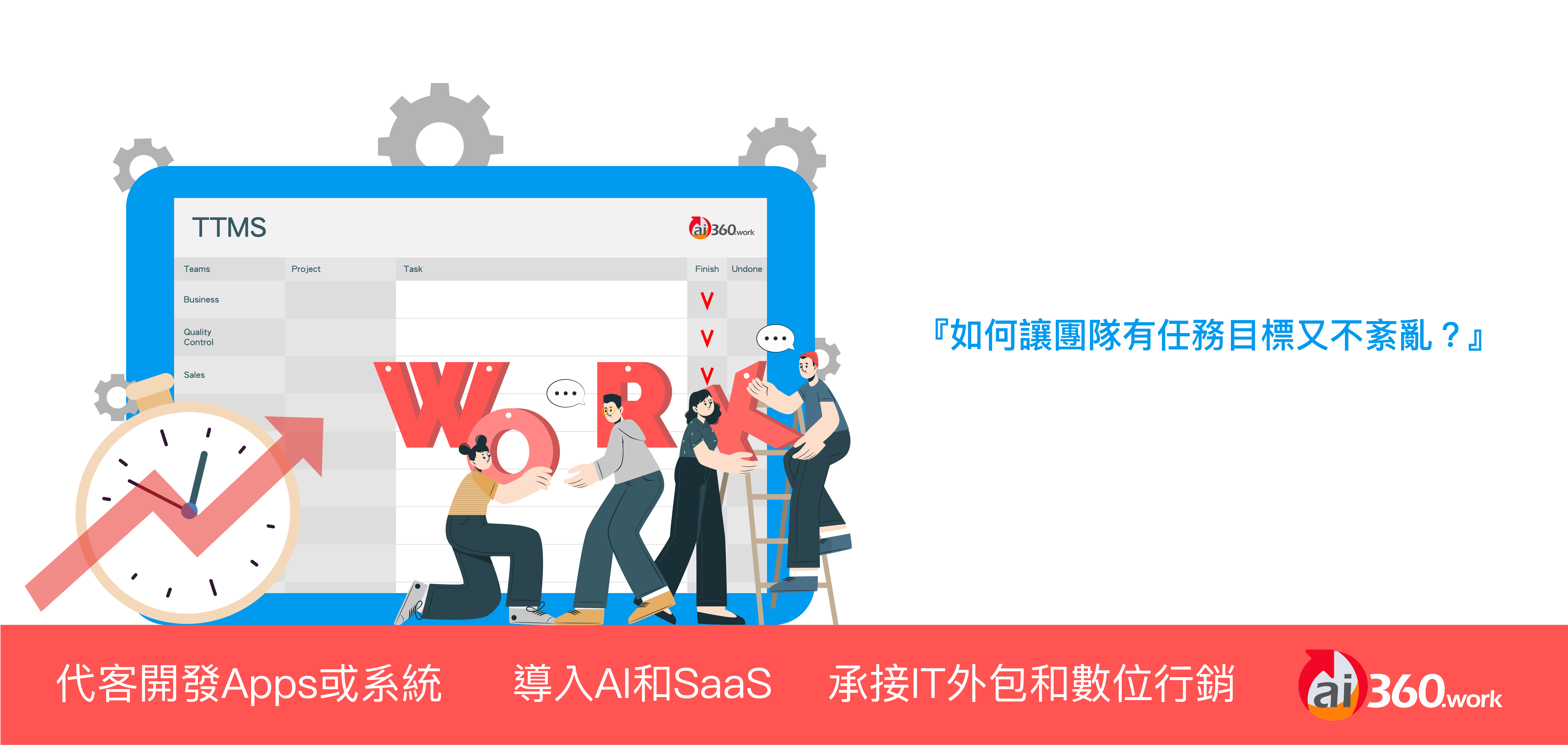 這時,Ai360任務與團隊管理系統(TTMS)就是極佳的工具,相關人員對於自身以及團隊中其他成員的任務也可以一目瞭然。除了了解進度,可以相互協助之外,尚可避免重複。