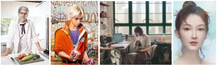 身份型虛擬數位人是真人形象在虛擬世界的具象表達。 這種類型的虛擬數位人可作為消費者進入虛擬世界的ID,在遊戲和泛娛樂領域得到最先應用,表現在遊戲玩家角色設計上、社交平臺個人虛擬數位人形象的生成等。