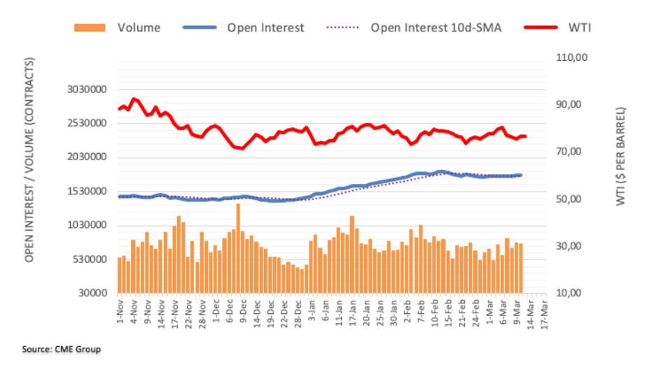 WTI原油仍然在77.00美元附近受阻,多頭在週一早些時候努力為廣泛的風險偏好情緒和美元疲軟而歡呼。即便如此,在美國能源資訊署(EIA)和石油輸出國組織(OPEC)的月度石油市場報告公佈前,原油仍在捍衛前一天從短期支撐線反彈的成果。