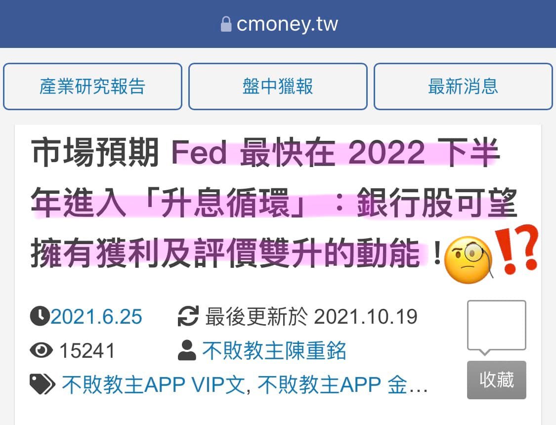 今年自從市場預期Fed將升息,市場就開始有買入金融類股的聲音,12月Fed確定加速縮減QE、美聯儲點陣圖顯示更2022年可能升息3次,但這是真的是好的投資建議嗎?